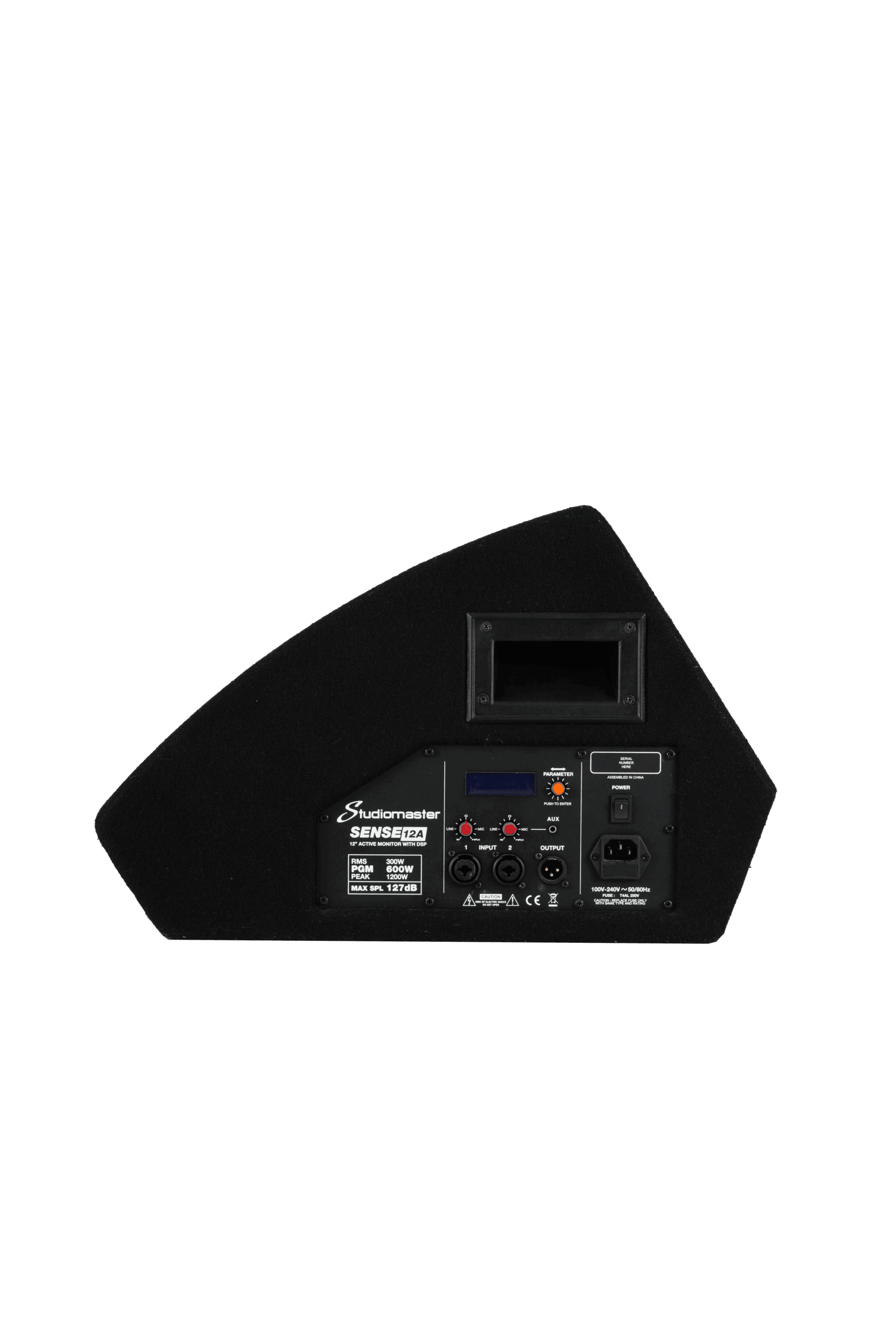 12” Active monitor speaker with carpet covering. Sense stage monitoring speakers feature Coaxial HF and LF units for increased sensitivity and true production of tone, with NdFeB magnetic HF compression drivers and a 43 degree monitoring angle all in a sleek, compact, lightweight design.